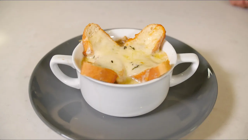 9. Put the soup bowl on a baking dish and place it in the oven for 5 -8 minutes.